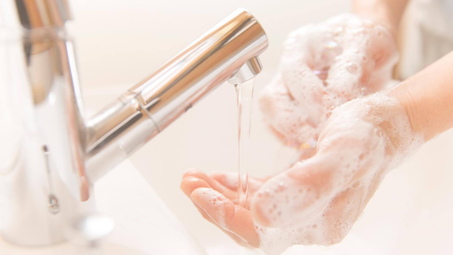 蛇口の場合、蛇口を開けたときに手についている菌が付着し、せっかく手を洗ってもまた閉めたときに菌が手に付着してしまいます。