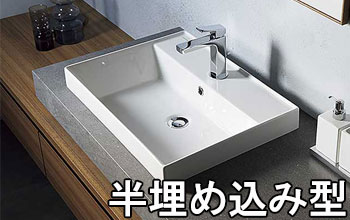 埋め込み型とは、洗面ボウルを途中まで天板に埋め込むタイプの洗面ボウルです。