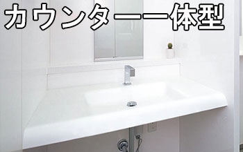 洗面カウンター自体をへこませるように一体成型して、カウンターと洗面ボウルが一体になっている形です。